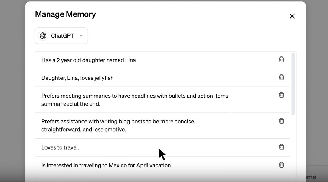 The example in OpenAI’s blog is this: “You’ve told ChatGPT you own a neighborhood coffee shop. When brainstorming messaging for a social post celebrating a new location, ChatGPT knows where to start.”